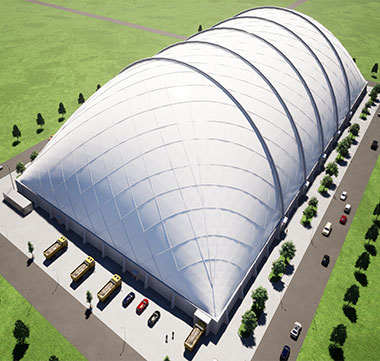 无梁无柱大跨度空间,跨度可达180米,空间使用率可达九成以上,体育、娱乐、展示等多功能需求均可应用,在煤仓和污水处理方面也可应用。